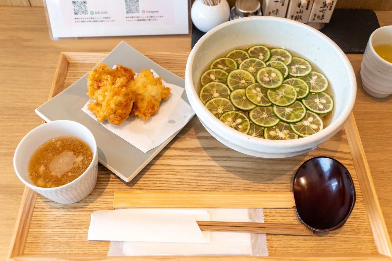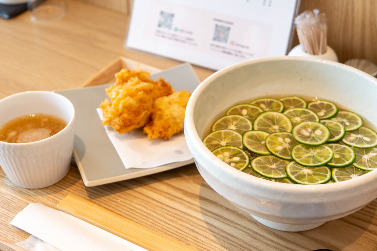 スープは優しいお出汁に、すだちの爽やかな風味がプラスされてすっきりとした味わい。暑い季節には特にぴったり!