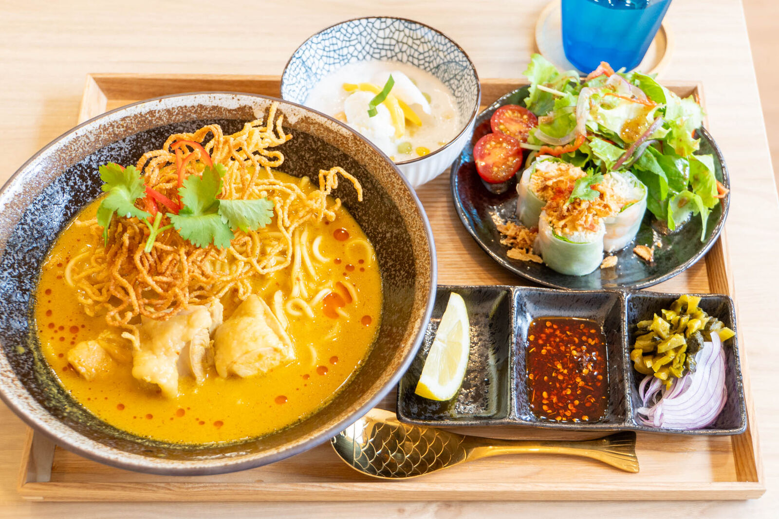 ええー!ランチセット豪華すぎない?カオソーイだけで十分なのにその他もメイン級なお皿がいっぱい。ではいただきます!