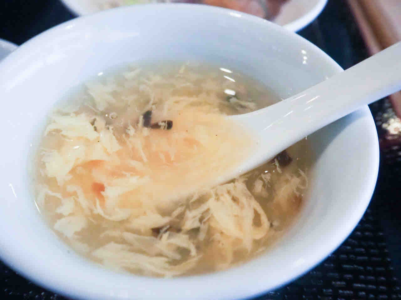 続いてはスープ。玉子はフワッフワ&きくらげの食感がたまらない!