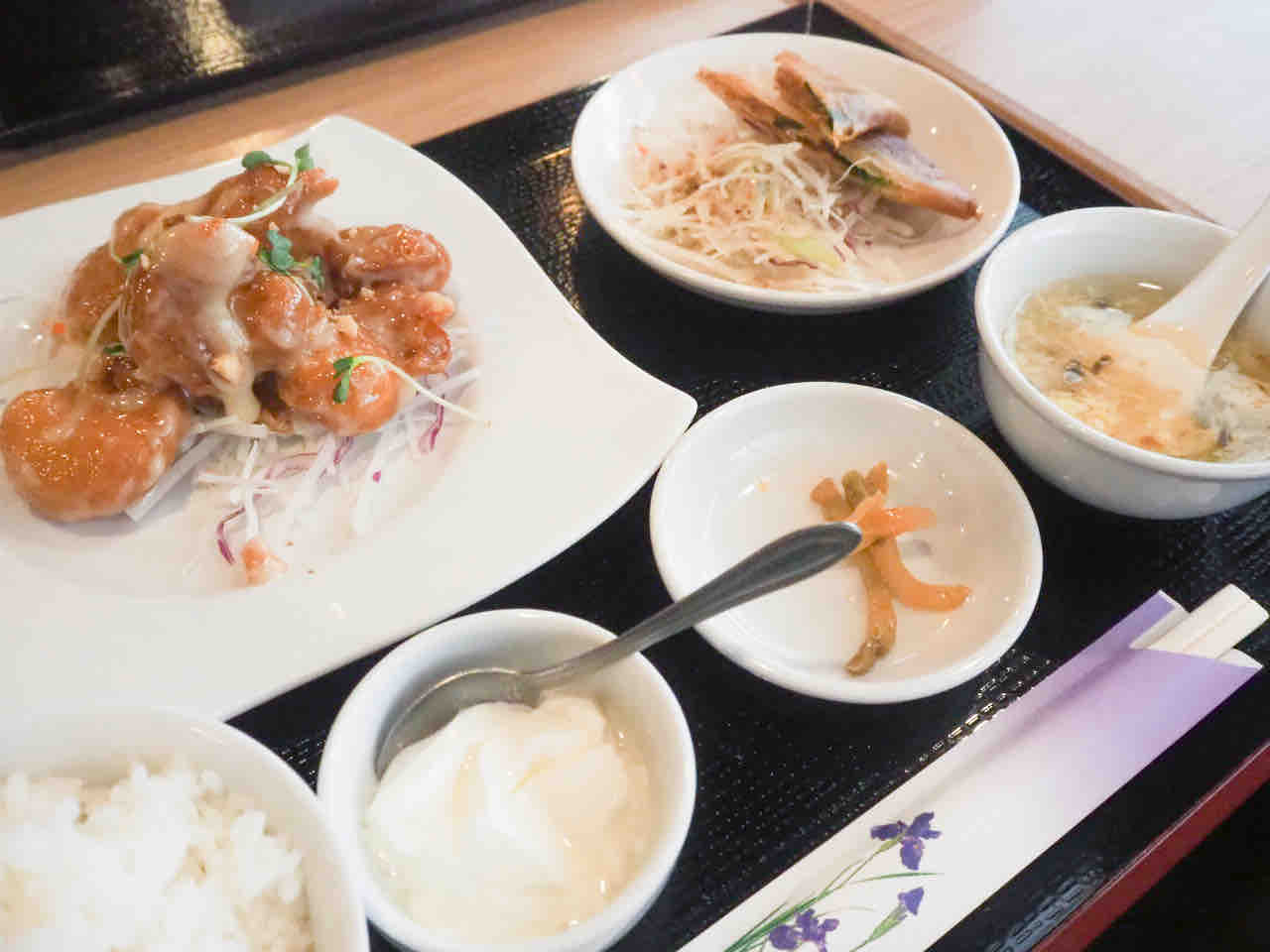 どどん!!エビマヨ定食の到着です!品数が多くてボリュームたっぷり!