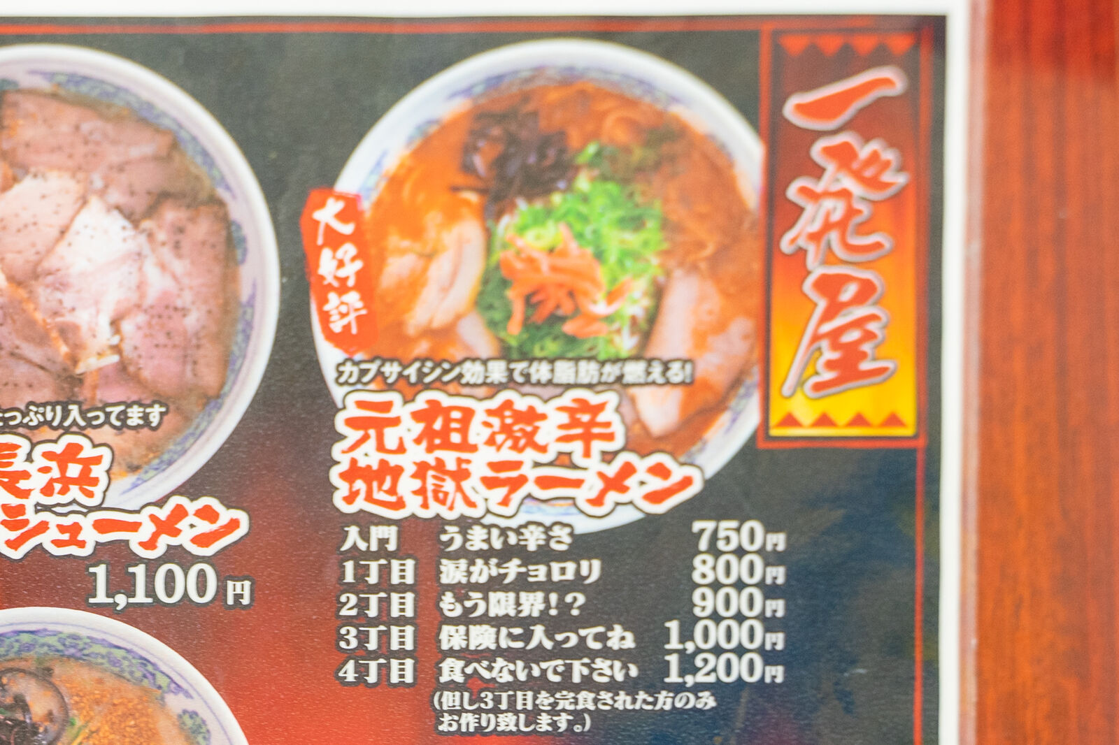 激辛地獄ラーメンがあり1丁目から6丁目までありまして、毎週1丁目ずつ進んでいき、5〜6年は完食者がなかったという6丁目のゴールを目指す企画です。