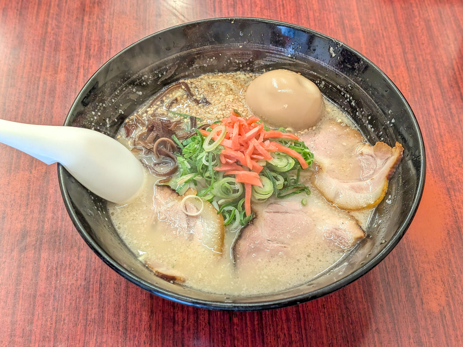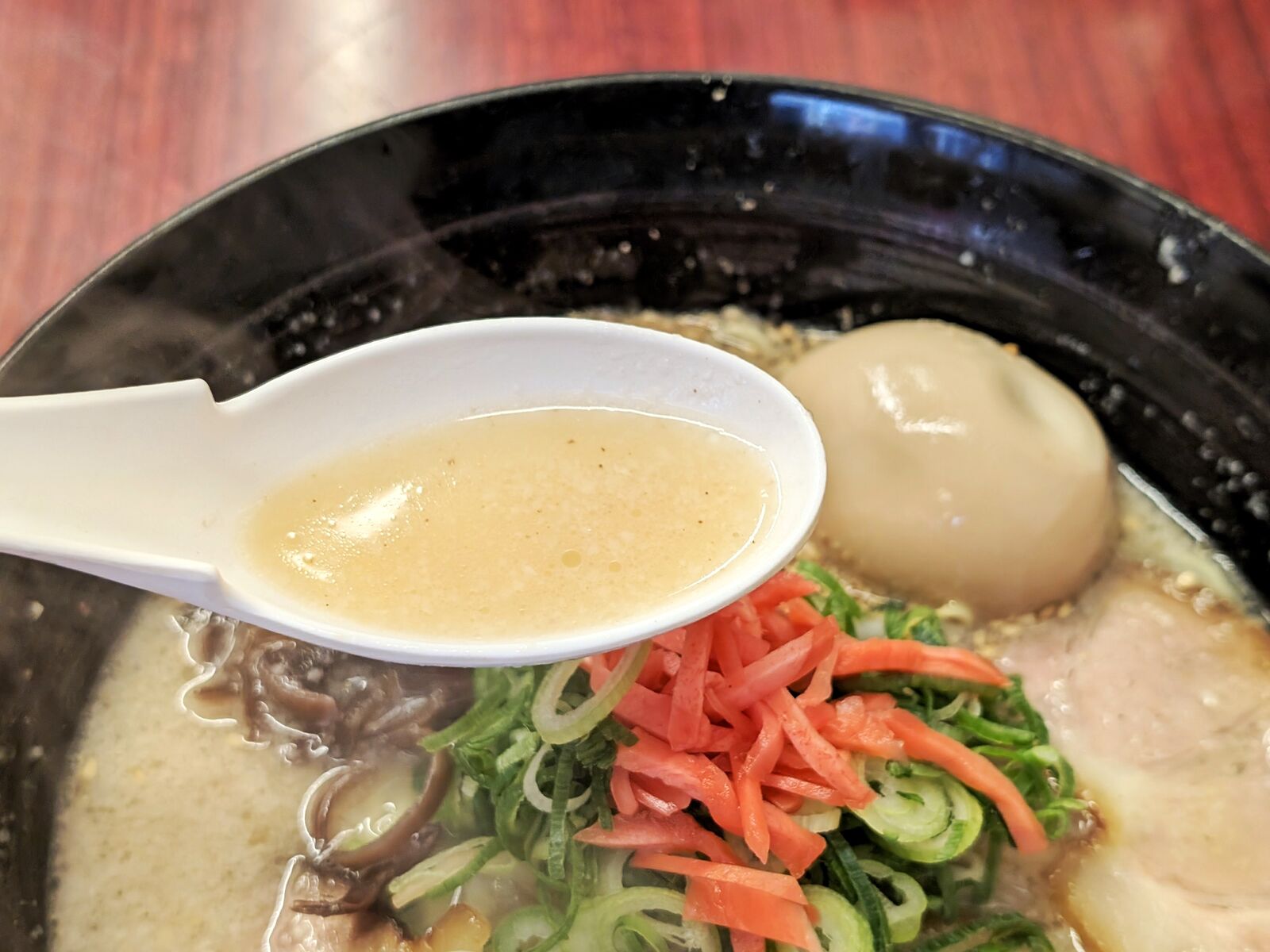 とんこつの濃いうま味が口に来たと思ったら、後はあっさり過ぎていく優しいお味。
