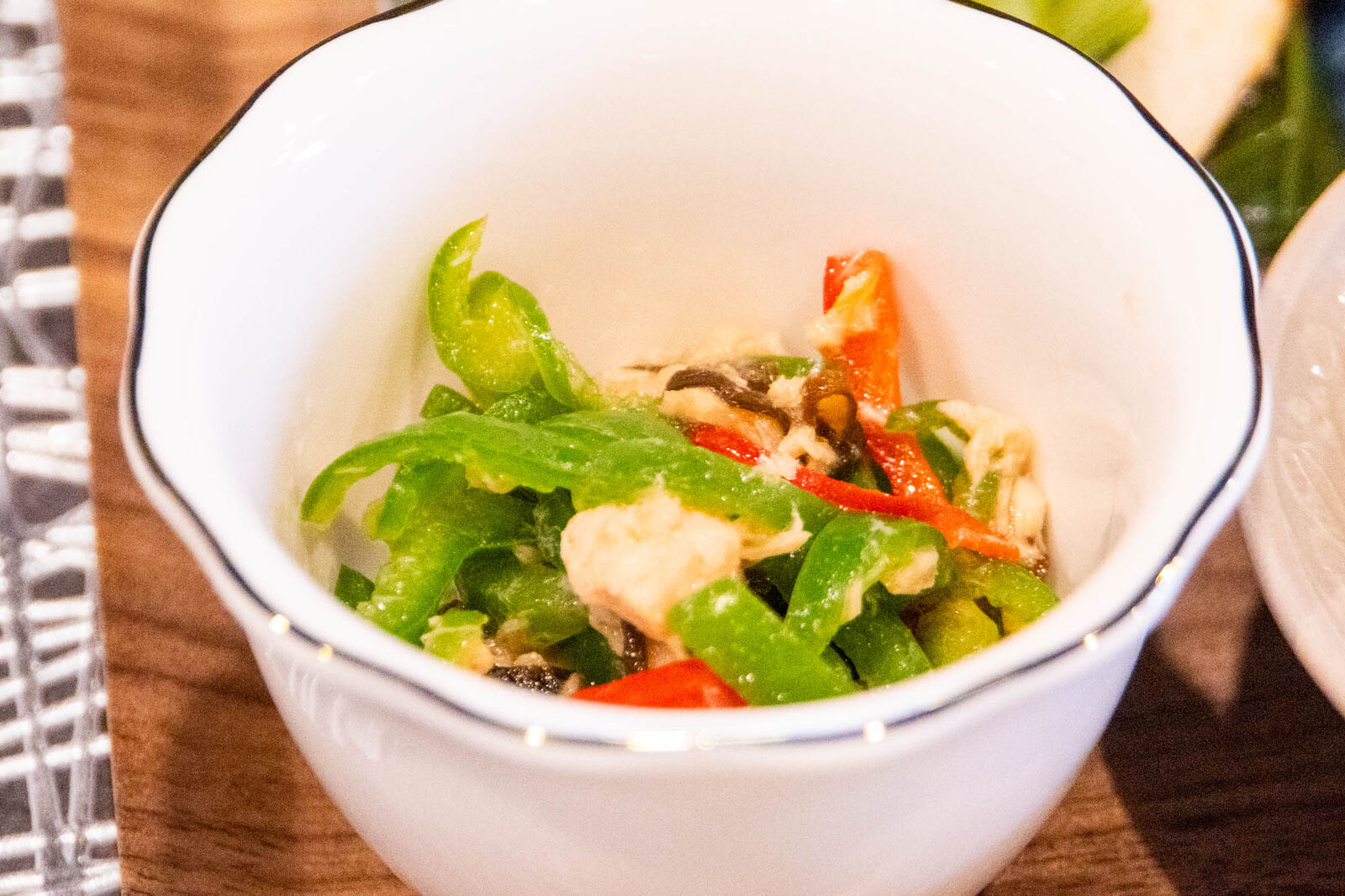 ごま油で和えているのでとても香りが良く、お酒のアテにも良さそうな一品!彩りもよく食欲がそそられますね〜!