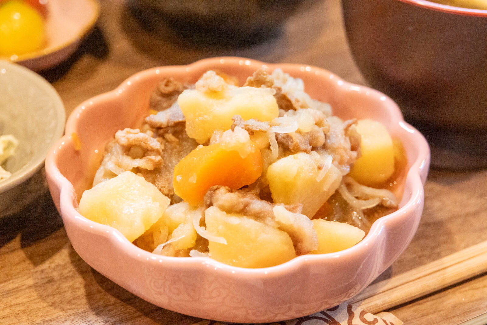 人参とじゃがいもはとっても味が染み込んでいてホクホク…お肉もいっぱい入っていて嬉しい一皿。ご飯も進みます!