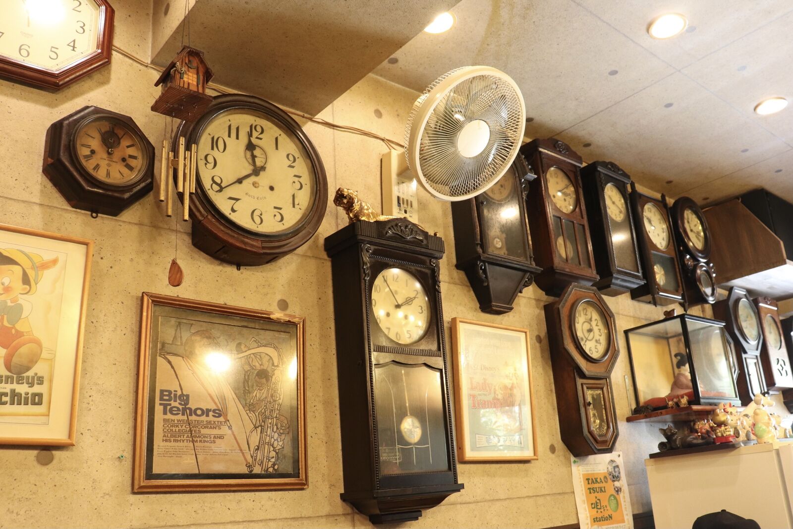 壁一面にはたくさんの時計が掛けてあり、BGMでモダンなジャズが流れていました。