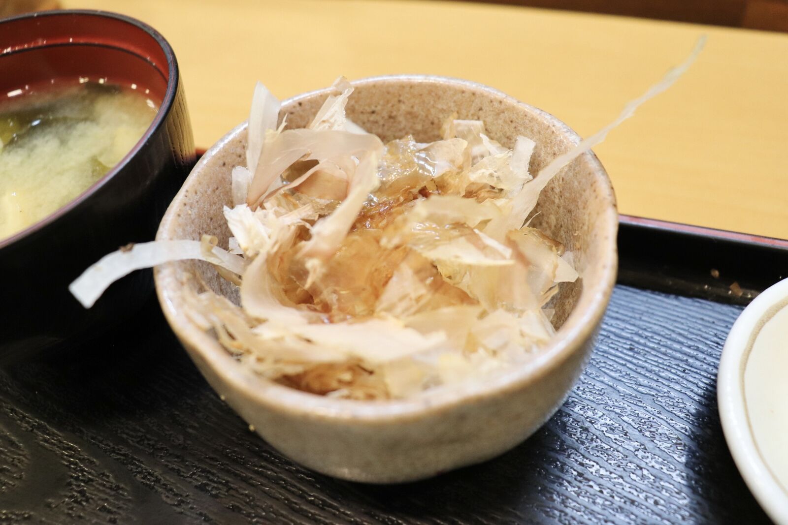 サイドの玉ねぎと鰹節の和え物もほんのりと柚の香りがし、サッパリしていて美味しい!