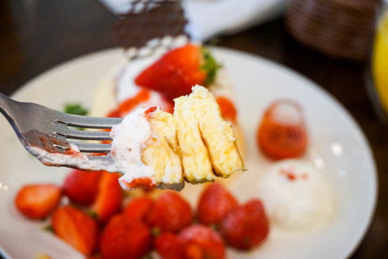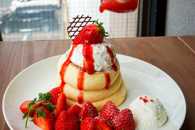 甘酸っぱい苺に、甘いパンケーキ、甘すぎない生クリームもほわほわで、すべてがよく合います!