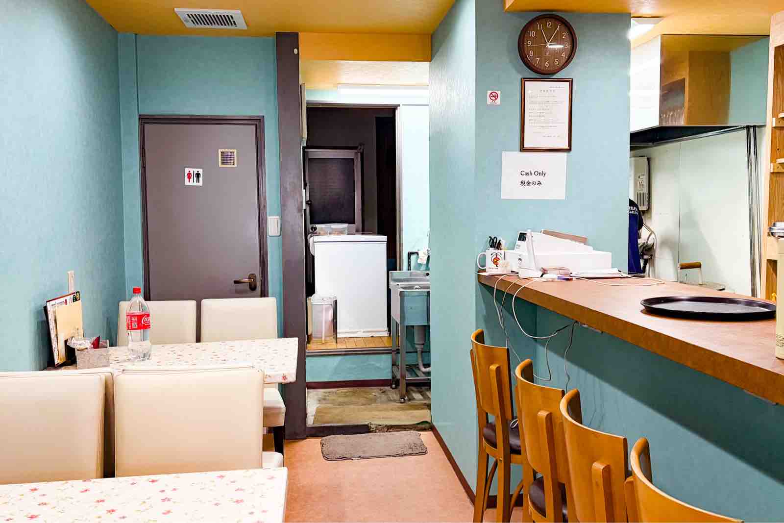 カウンター席が4つ、4名がけのテーブル席が3つあります。
