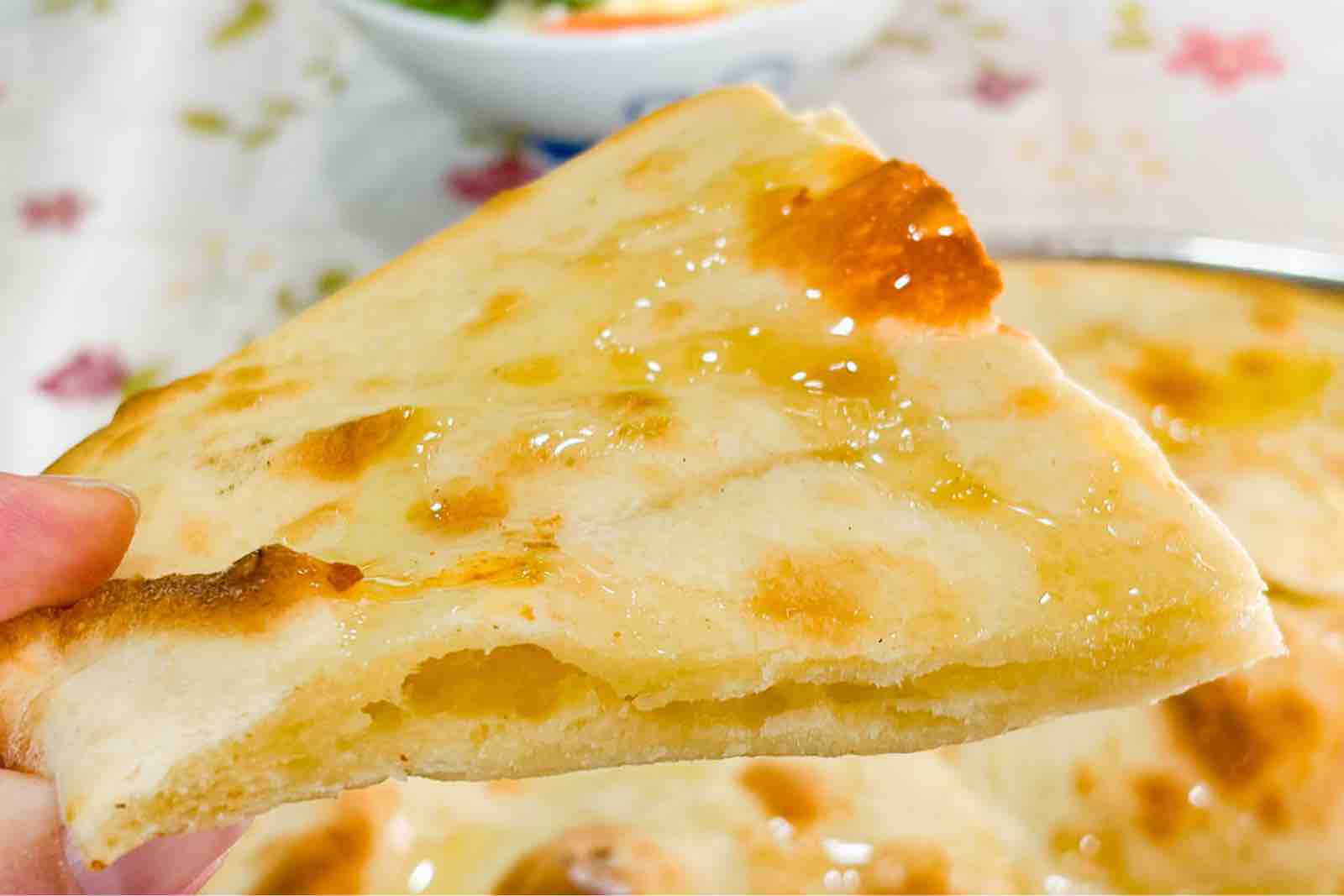 ガーリックの香りが運ばれてきた瞬間から食欲を刺激する一枚。表面はほんのり香ばしく、中はもっちりふわふわで、噛むたびにガーリックの風味とバターのコクが広がります!