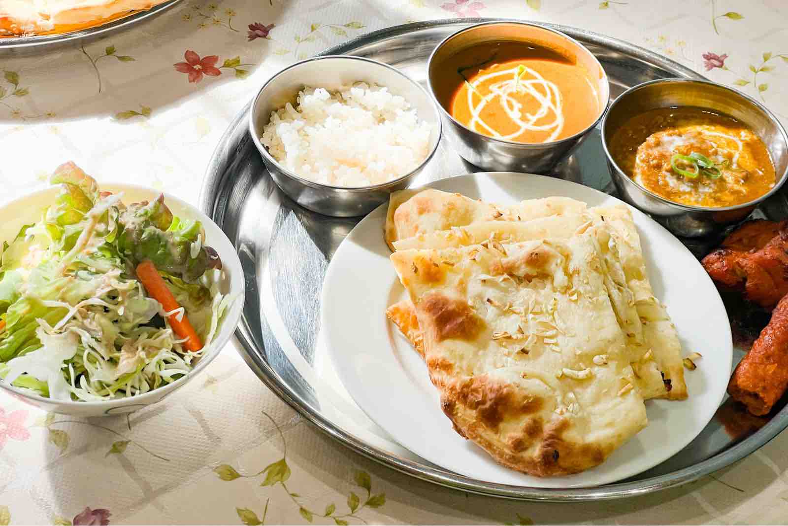 カレーと合わせるとガーリックのパンチがアクセントになって、キーマやバターチキンのうまみをより引き立ててくれる印象。ボリュームもしっかりあって、最後まで満足感のあるナンでした〜!