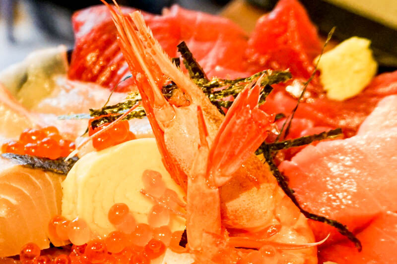まず先に頂いたのは、存在感抜群に海鮮丼の頂点に立っている海老!甘くて全部美味しい!食べられるところは全部剥いて食べました!