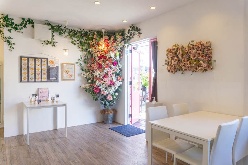 店内にあるお花を背景に写真をとると、めっちゃ映えます↓