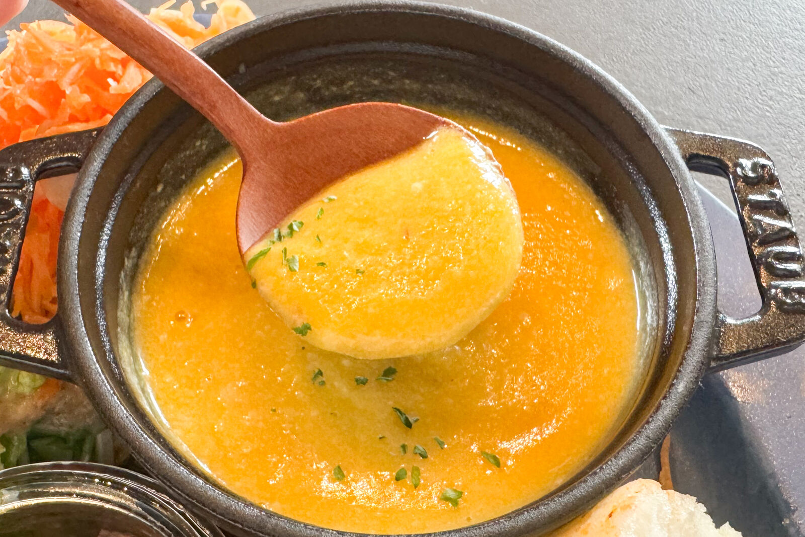 甘酒のかぼちゃポタージュは、かぼちゃの甘みと甘酒で深いコクと自然な甘さの優しい味わいでした。