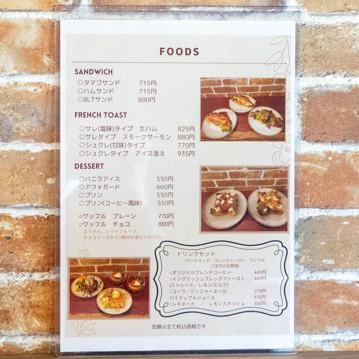 メニューはドリップコーヒーや紅茶のほかにサンドイッチやデザートなどのフードメニューもあります。