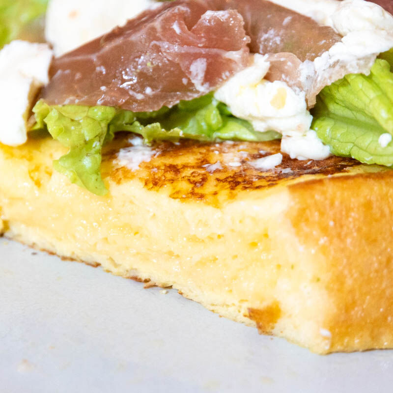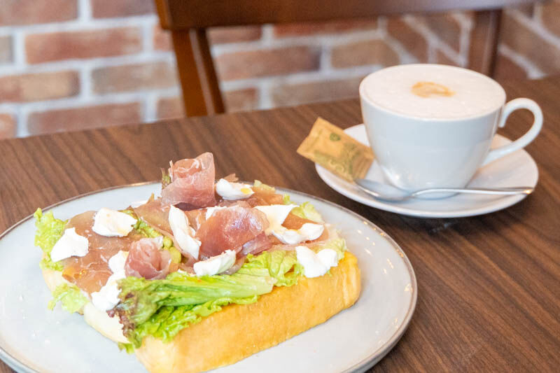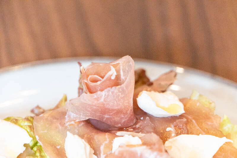 フレンチトーストは、サレタイプ(塩味)ということで、トースト自体の塩っけと生ハムのマイルドな塩味がいいハーモニーでした〜!そして生ハムをバラのように見立てているのがとっても素敵…まるでバラ園のような盛り付けで写真映えもしますね〜!