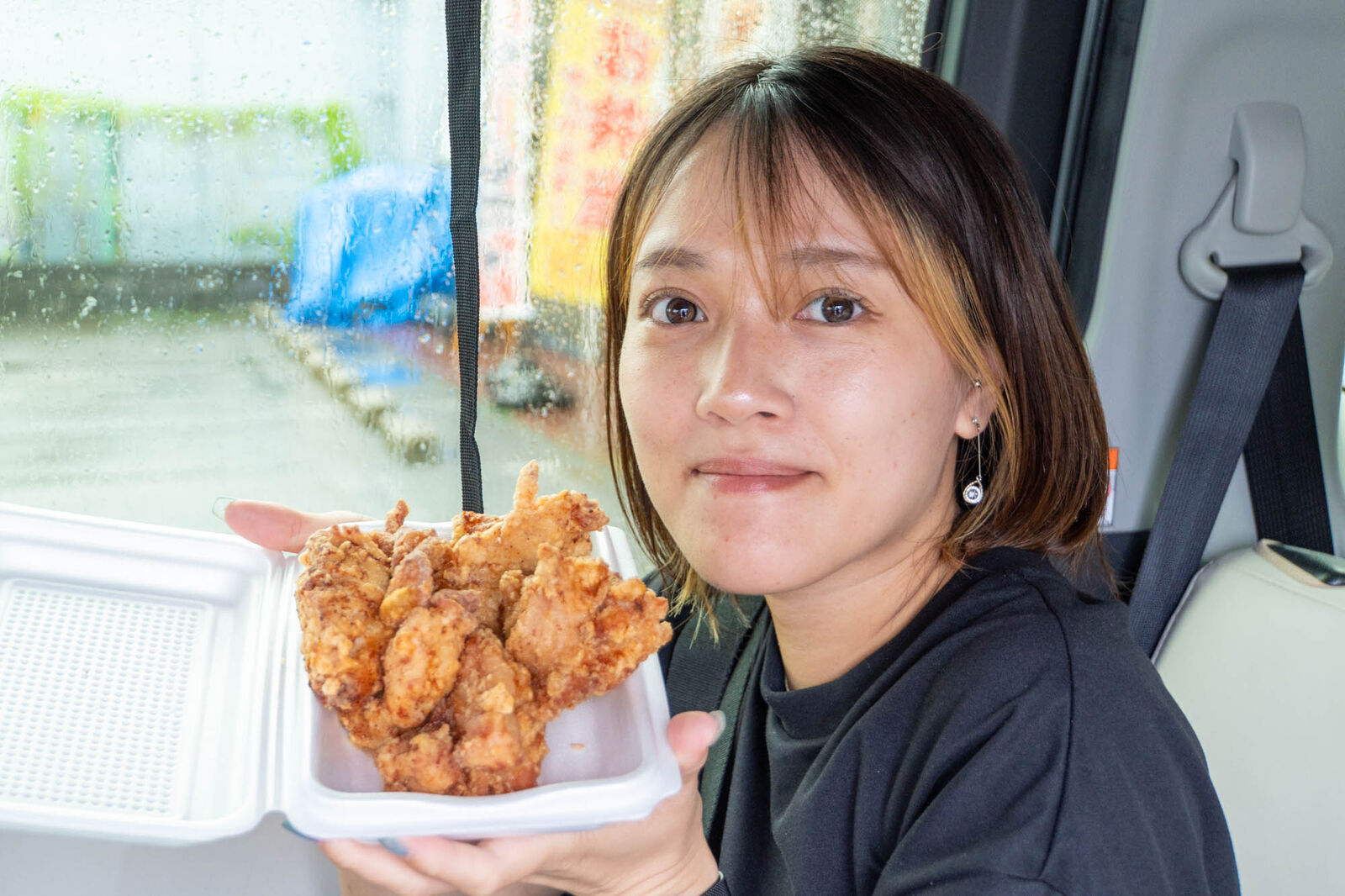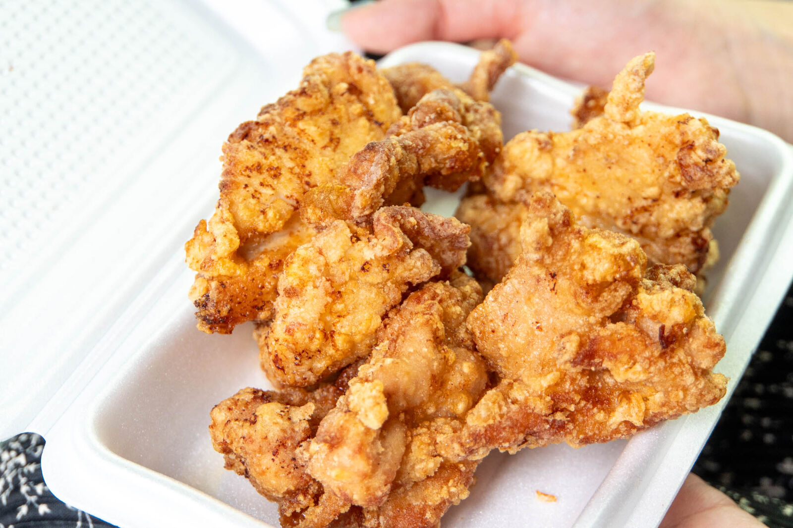 「一個がとにかく大きくて驚き!私はむね肉をいただきましたが、あっさりとした肉に対して、衣にはしっかりと醤油とニンニクが効いていて、パンチのある味わい。お腹が空いているときにぴったりで、ご飯と一緒に食べたくなる満足感たっぷりのからあげ!」