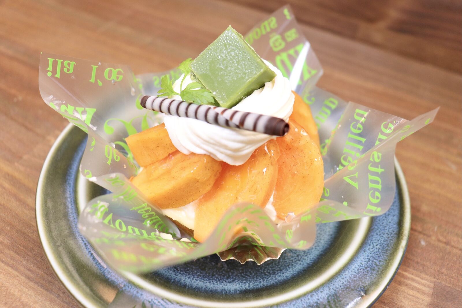 上には抹茶の生チョコが乗ってあり、柿は綺麗にナパージュされています。
