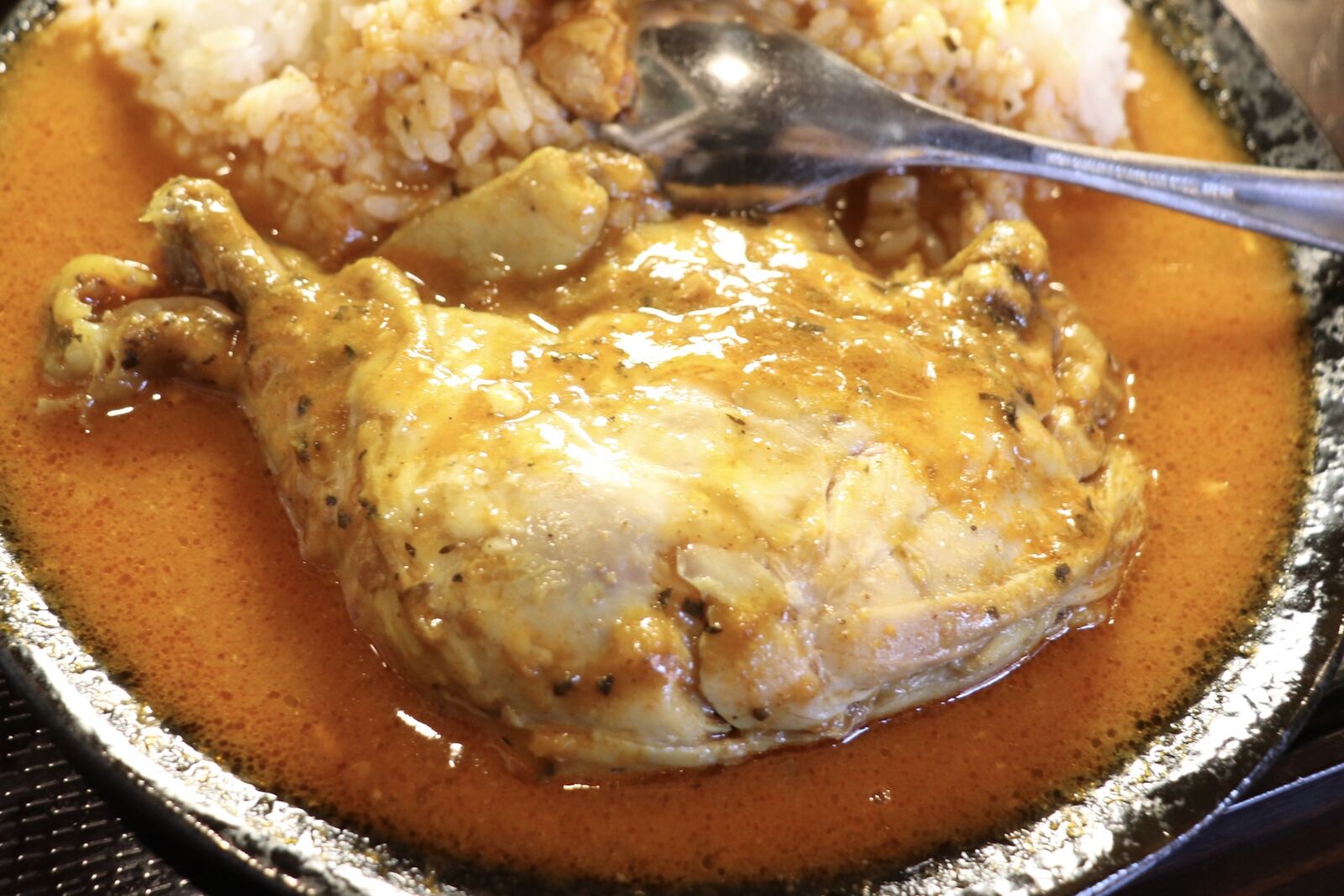 チキンはスプーンで少し触れるだけでホロホロとほぐれ、めちゃくちゃ柔らかい!