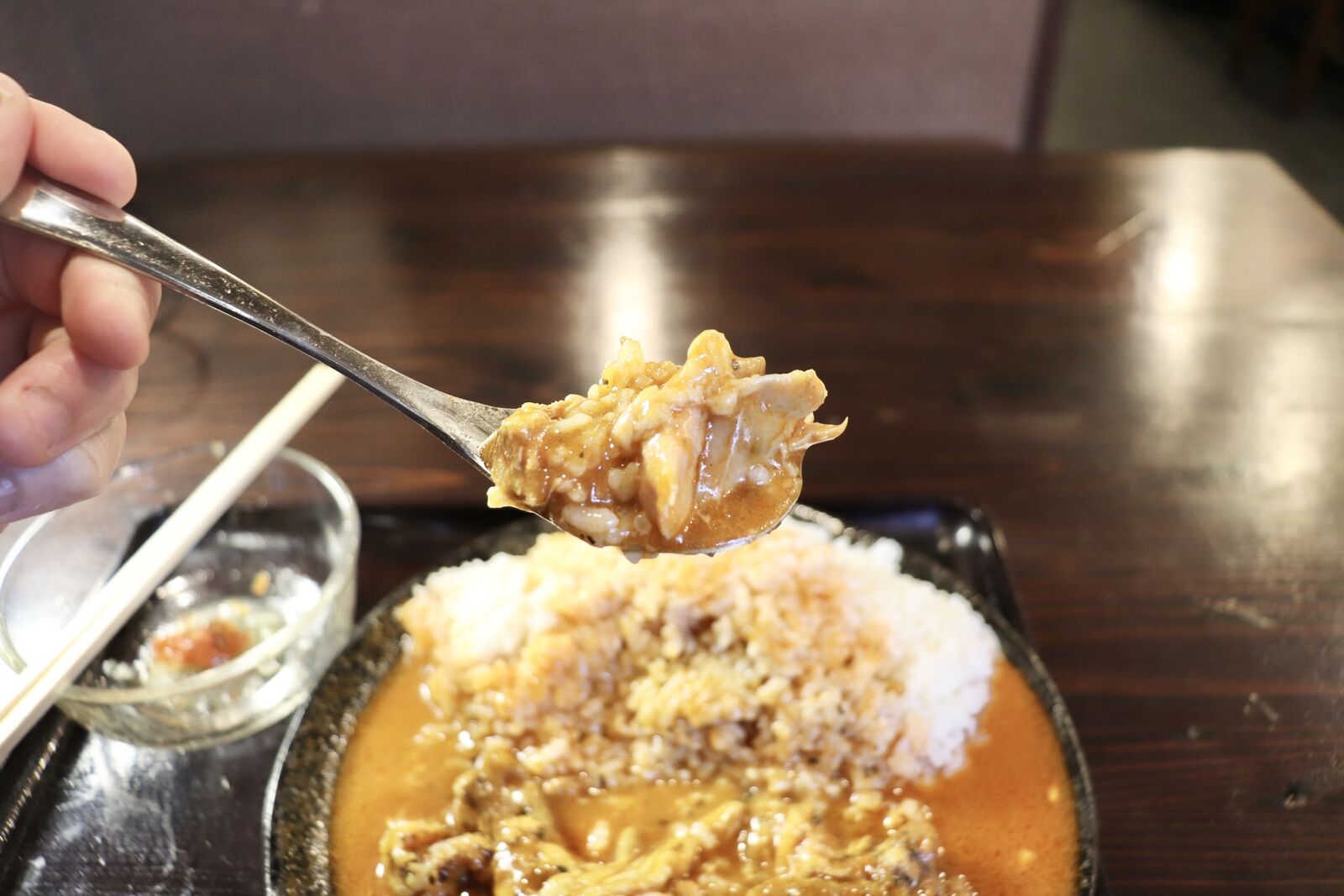 さらにチキン自体にもスパイシーな味付けがされていて、チキンだけでもご飯が進みます。カレーはそこまで辛くなく、辛いのが苦手な方でも十分食べられる味わいになっていました!