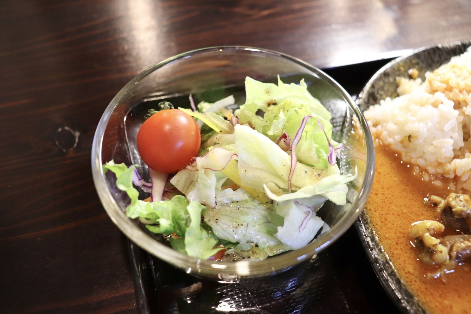 さっそくカレーを食べたいところですが一旦落ち着き、まずはサラダから!