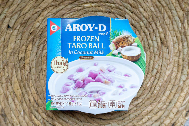 パッケージのように紫の芋が入っているわけではなかったんですが、茶色っぽい色がタロイモです。