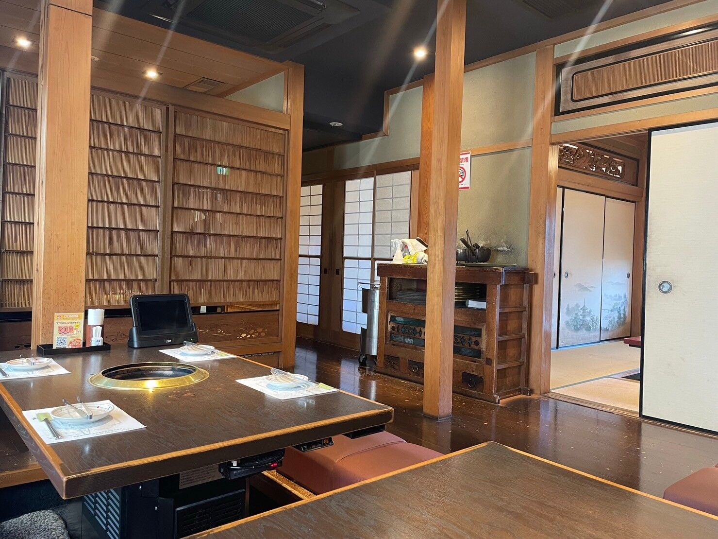 日本の伝統的な建築様式である書院造の空間で、寛ぎながらお肉をいただけます。