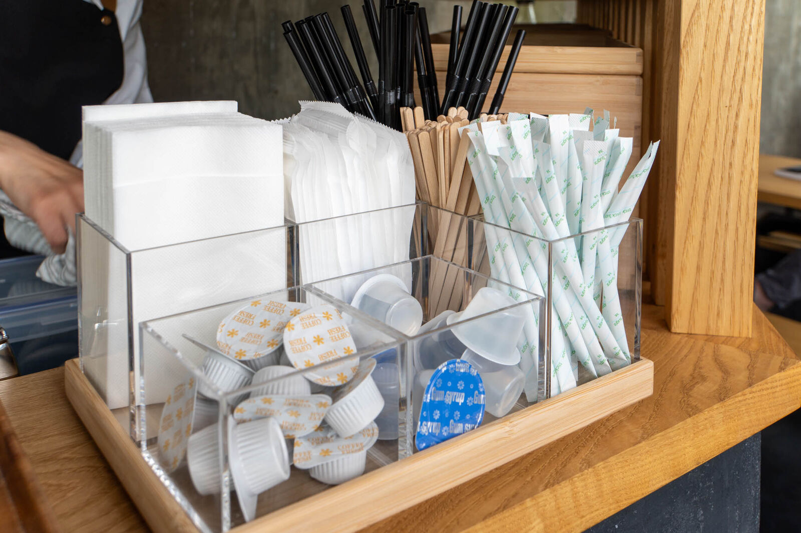 ドリンクの甘さ調節はセルフスタイルです。
