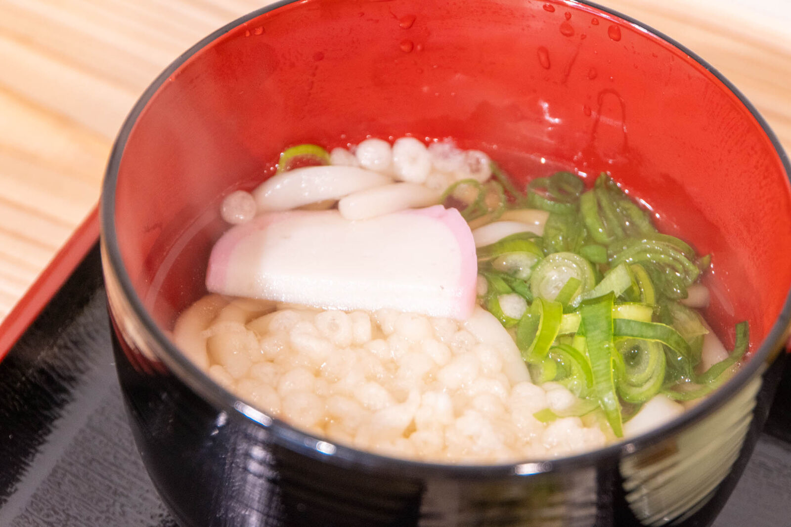 天かすたっぷりの出汁が美味しいおうどん…優しい温かさが身体に染み渡ります〜!
