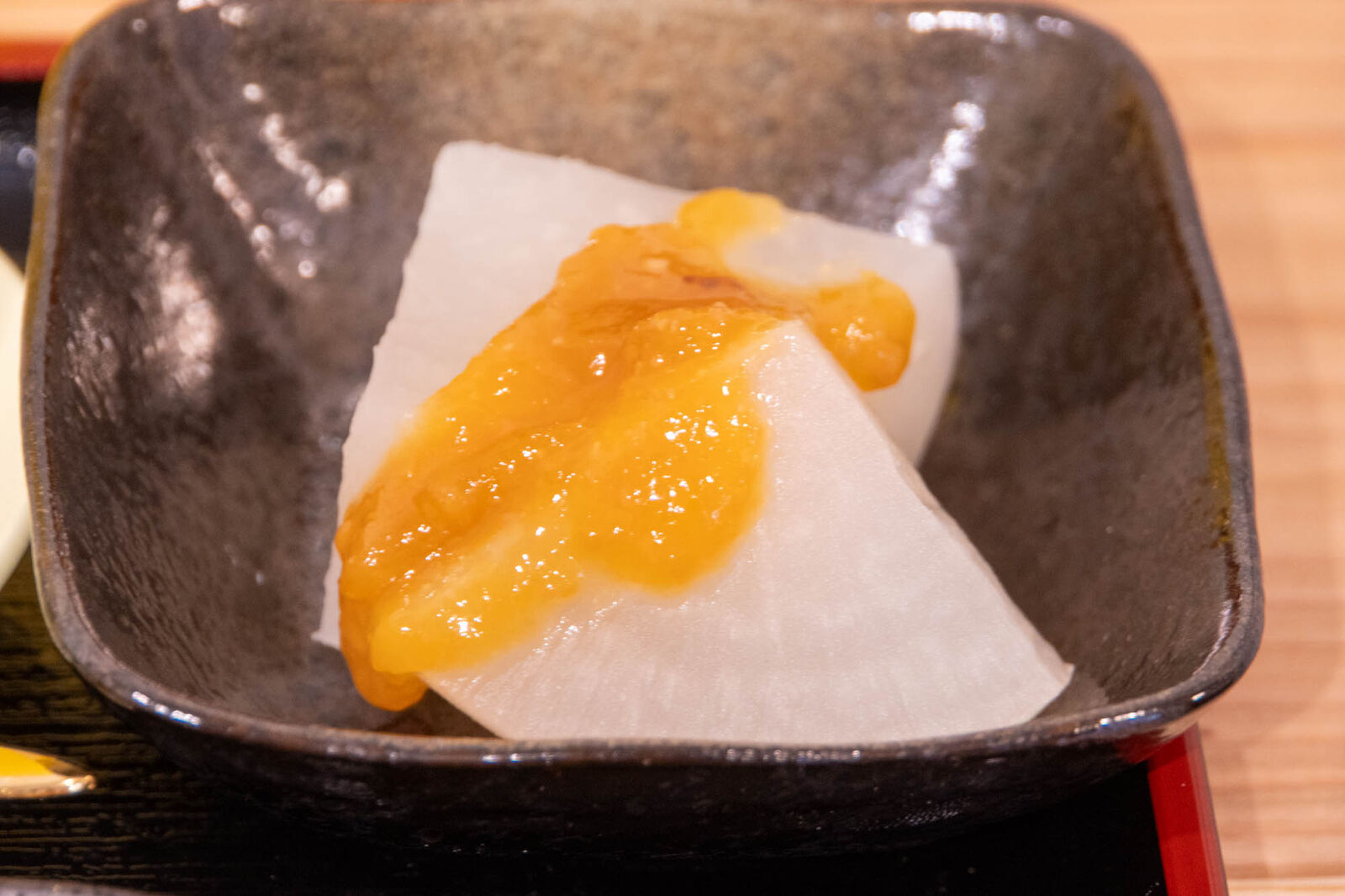 柔らかく炊いた大根に酢味噌っぽいタレが良く合います。