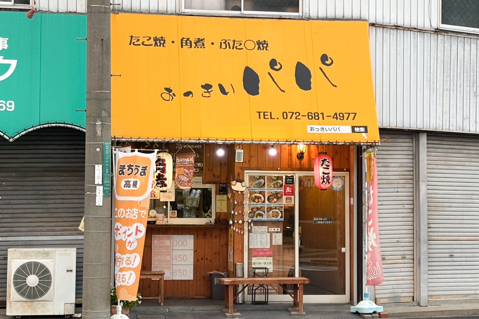 遠くからでも目立つ黄色い看板と「おっきいパパ」という店名が目を引きます。