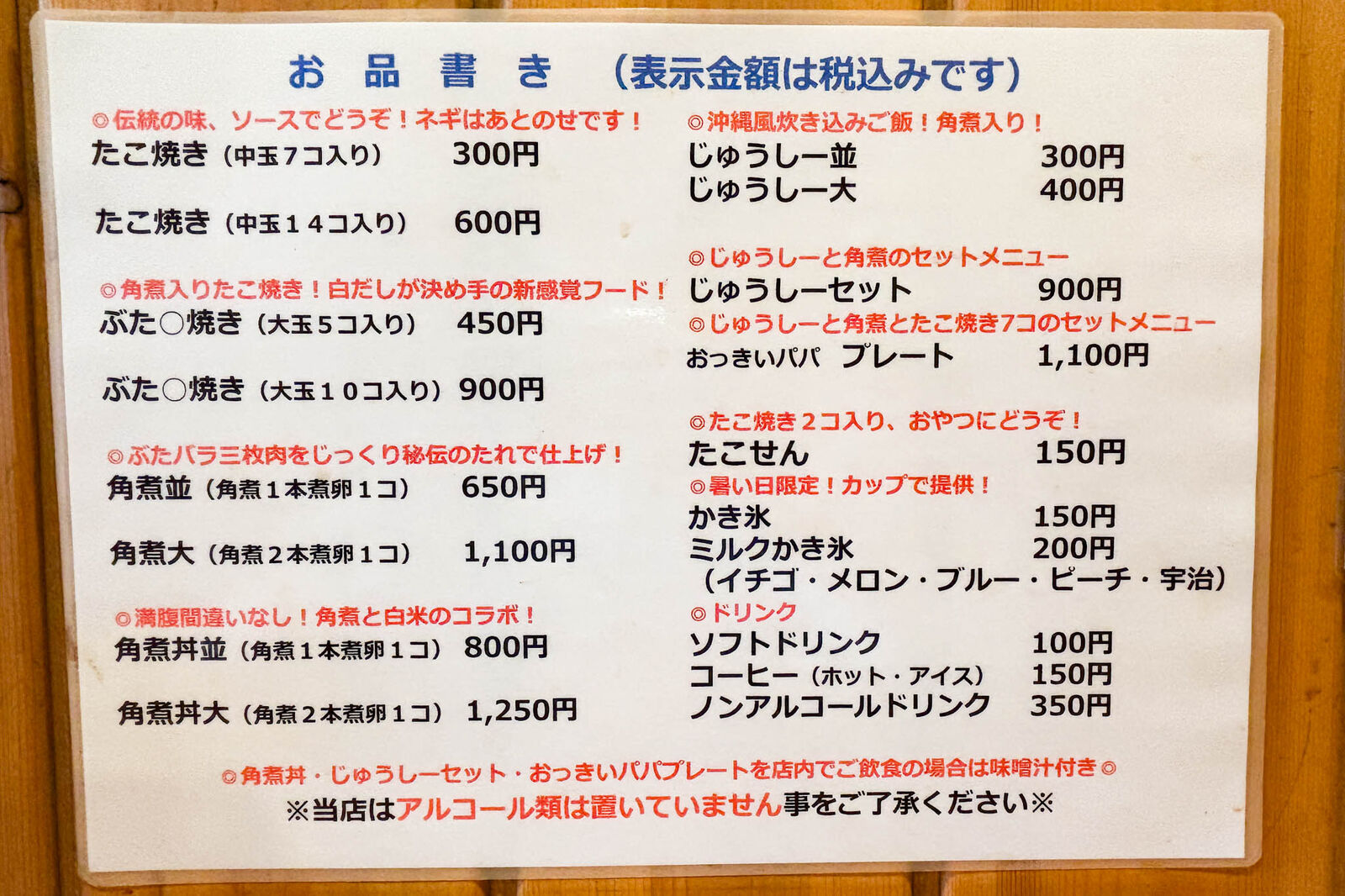 メニューにある「ぶた◯焼き」は角煮入りたこ焼きだそうです。