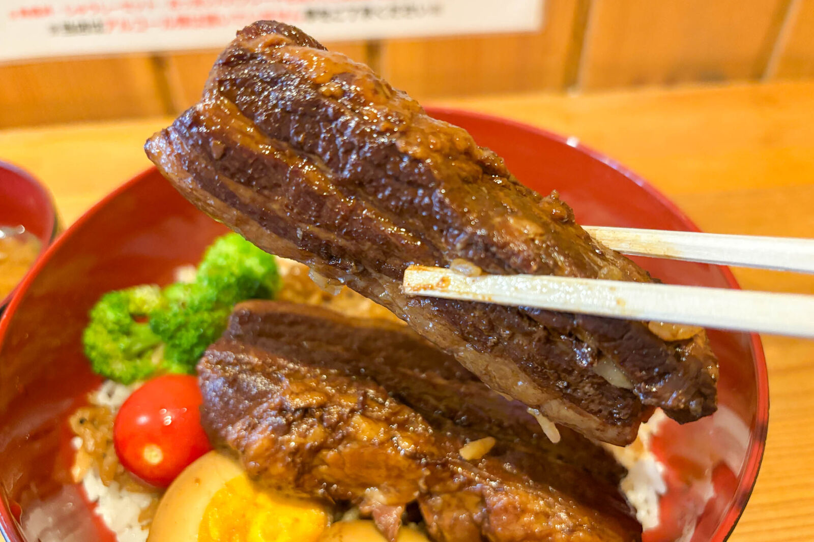 今回は大盛りを頼んだので角煮が2本も乗っていてボリューム満点!