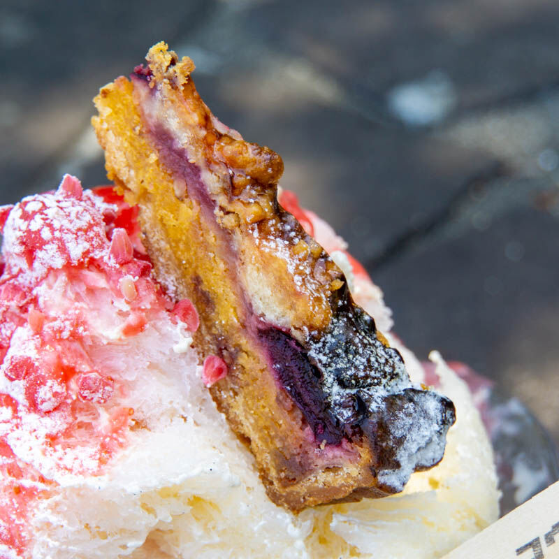 かき氷の上にはブルーベリーのタルトがのっています!こちらはもう安定の美味しさ!