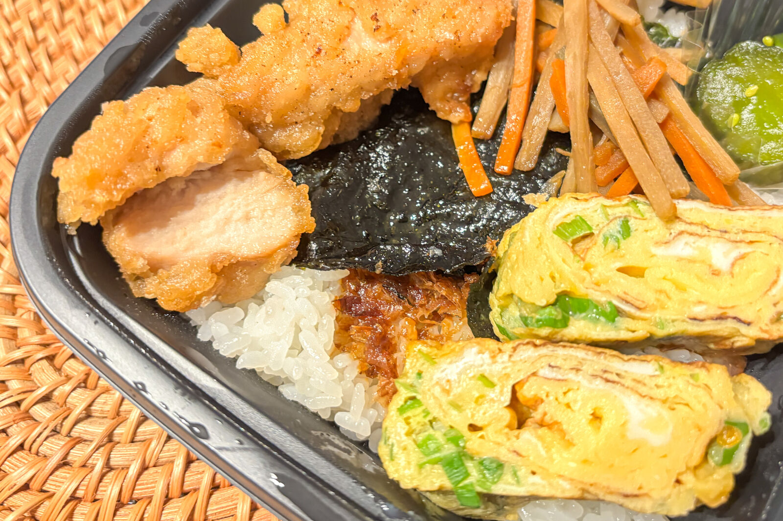 「きんぴら」も入っていますし、しっかり栄養も摂取できる「のり弁」。どのおかずも白米と合うので、最後まで楽しみながら食べることができました!