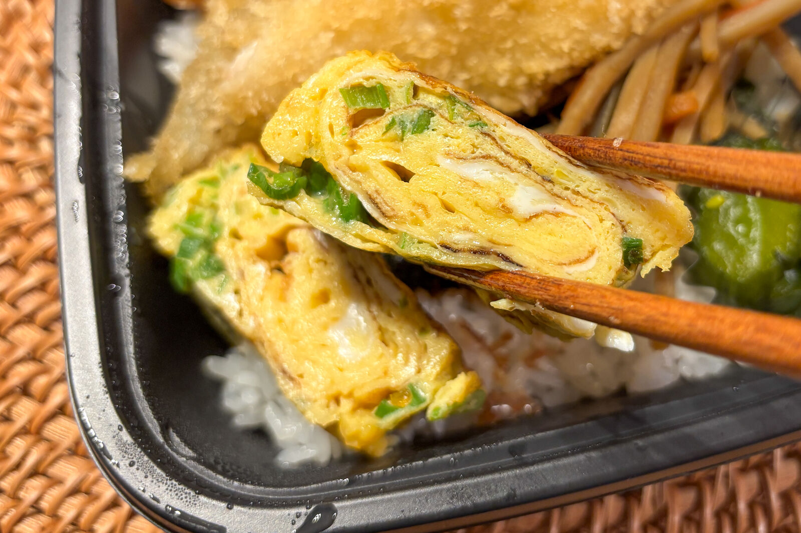 ねぎ入りの卵焼きは甘めの優しいお味です。なんだかホッコリ。