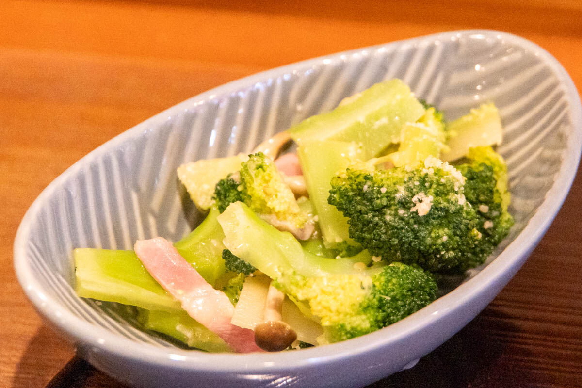 たっぷり盛り付けられたブロッコリーは柔らかく、チーズがよく絡んでいる洋風なテイスト!そこにベーコンの塩味がいいアクセントに!