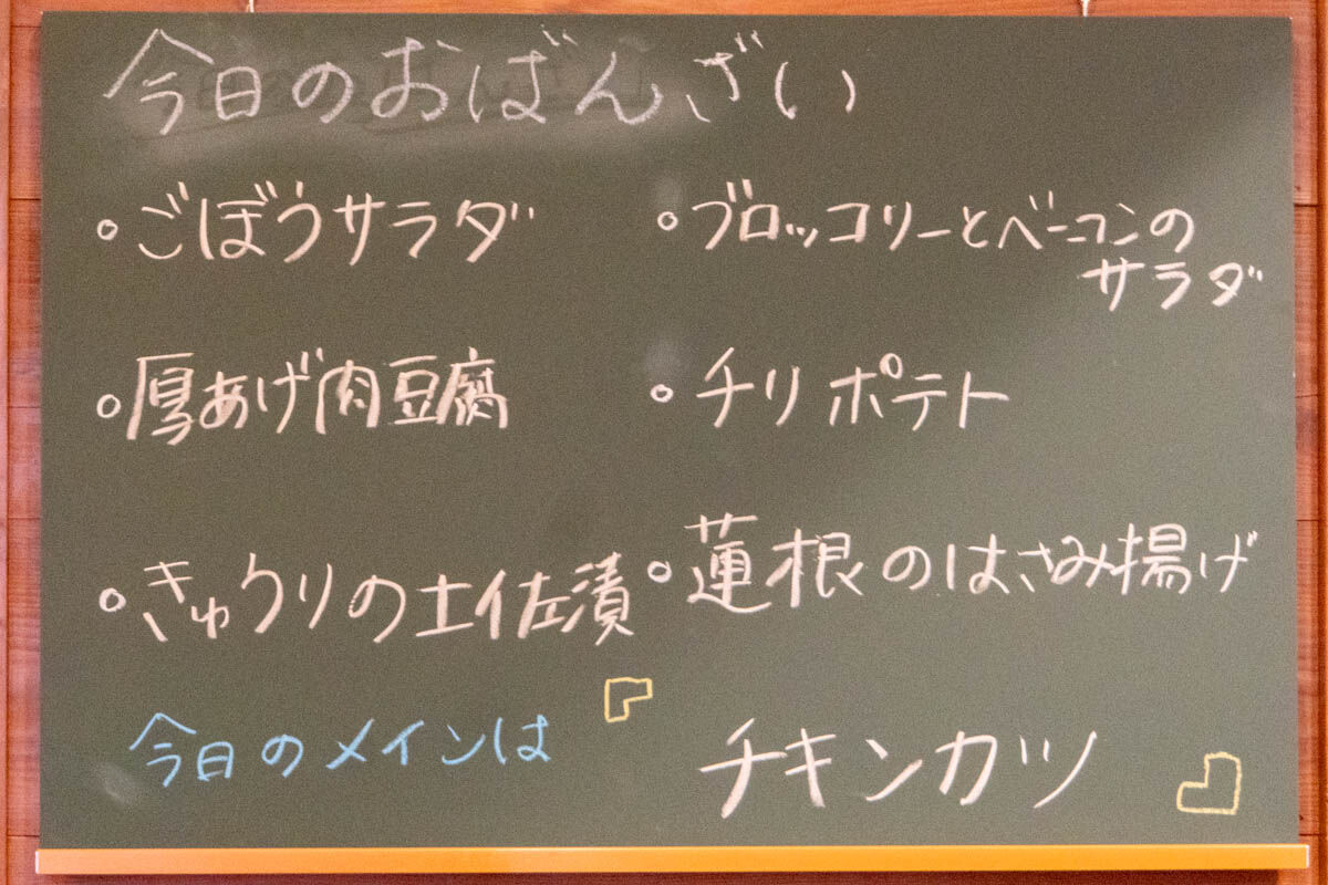 取材に行った日のメインは「チキンカツ」でおばんざいは下記6種類から↓