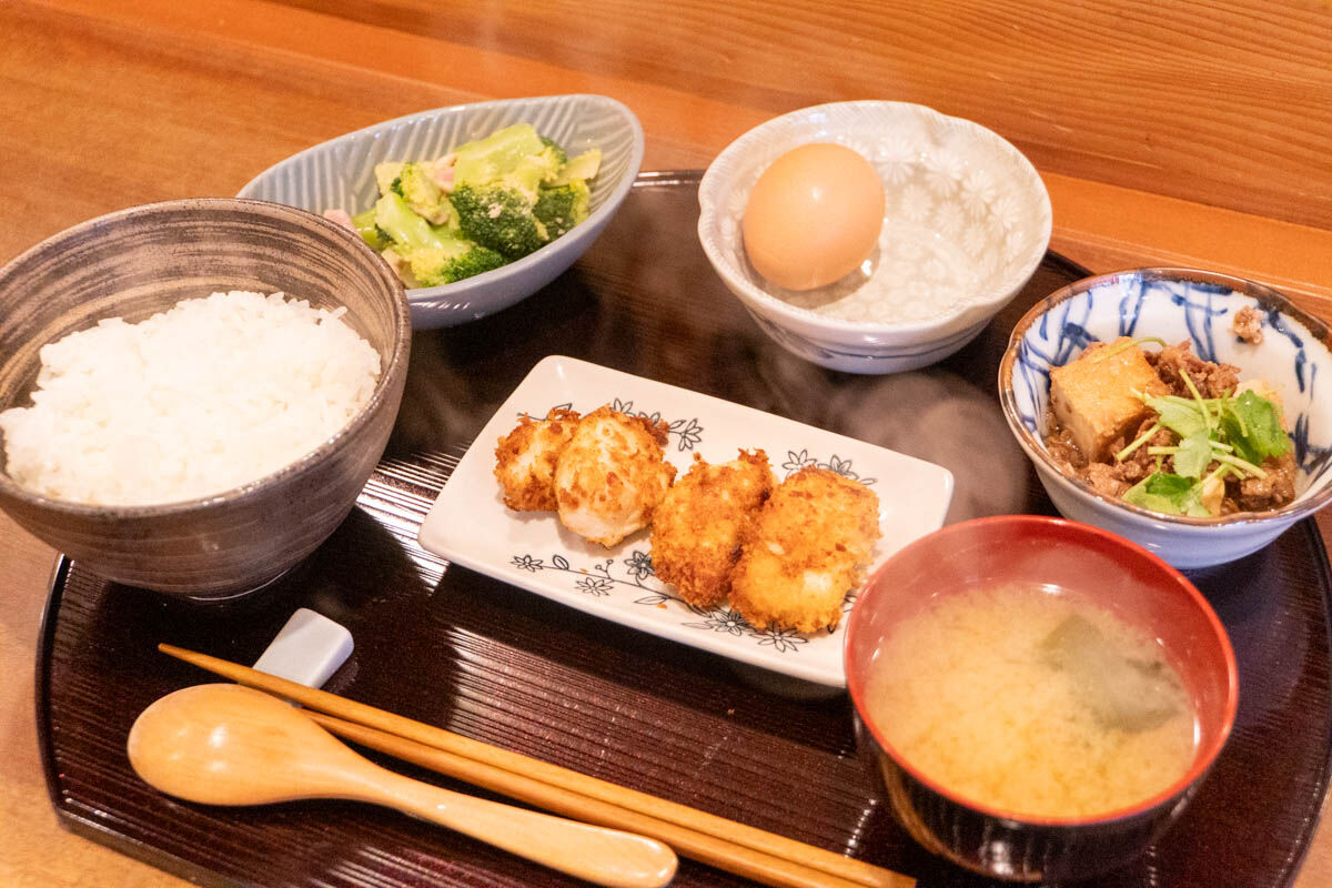 「+HOME」の『メイン付卵かけご飯ランチ』(芥川商店街)【たかつーグルメ】
