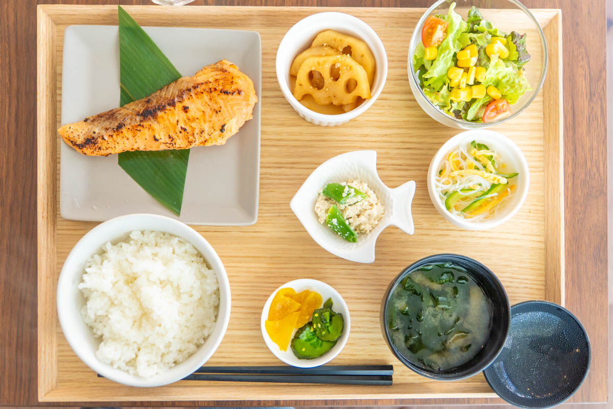 メインの西京焼きに、ご飯、味噌汁、サラダ、小鉢が3種類もついて豪華!!!