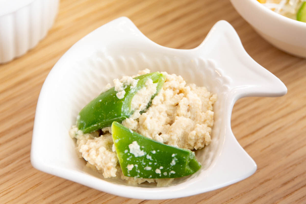 2品目はスナップエンドウの白和え。