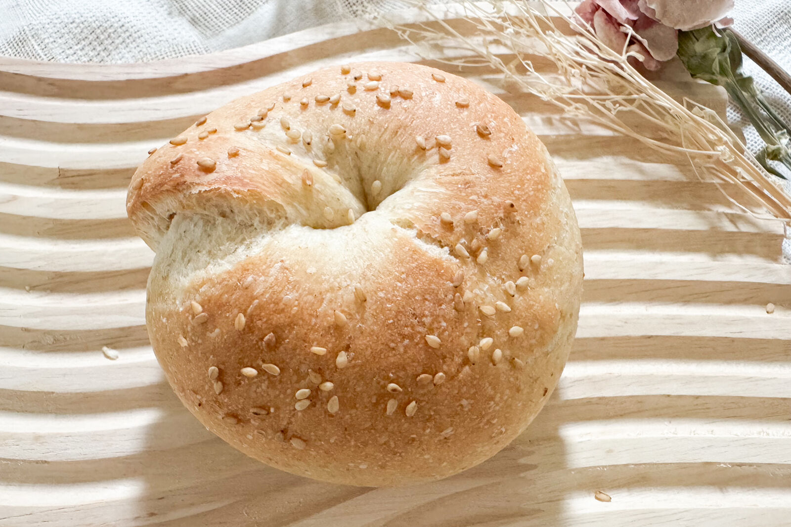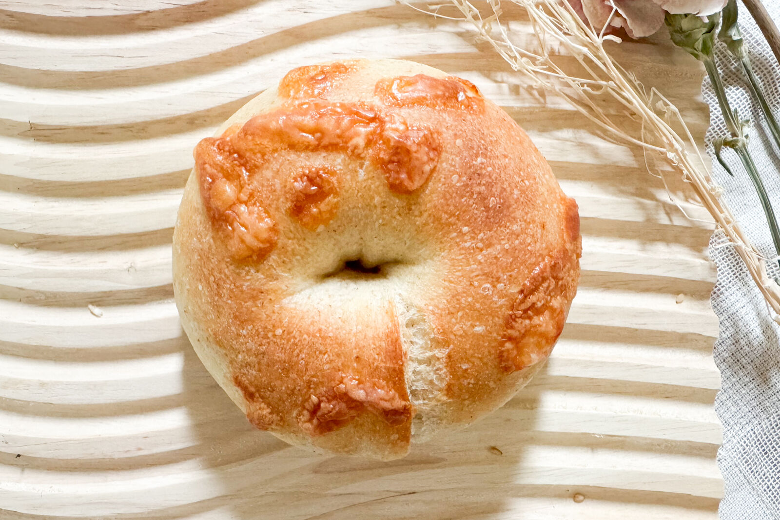 出来立てのベーグルはアツアツだったので、袋(有料)に入れていただきました。オシャレ~!