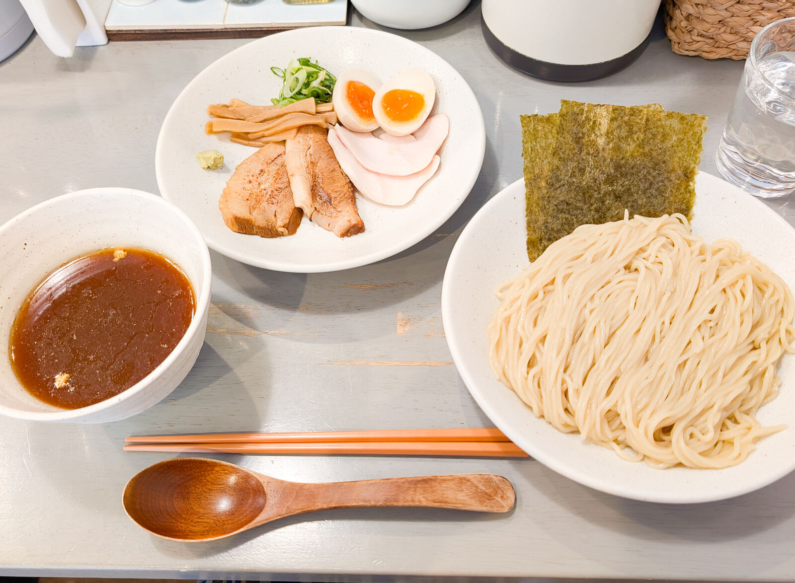 『特製つけ麺(1180円)』!しょうゆor塩で選べるスープは、しょうゆをセレクトしました。