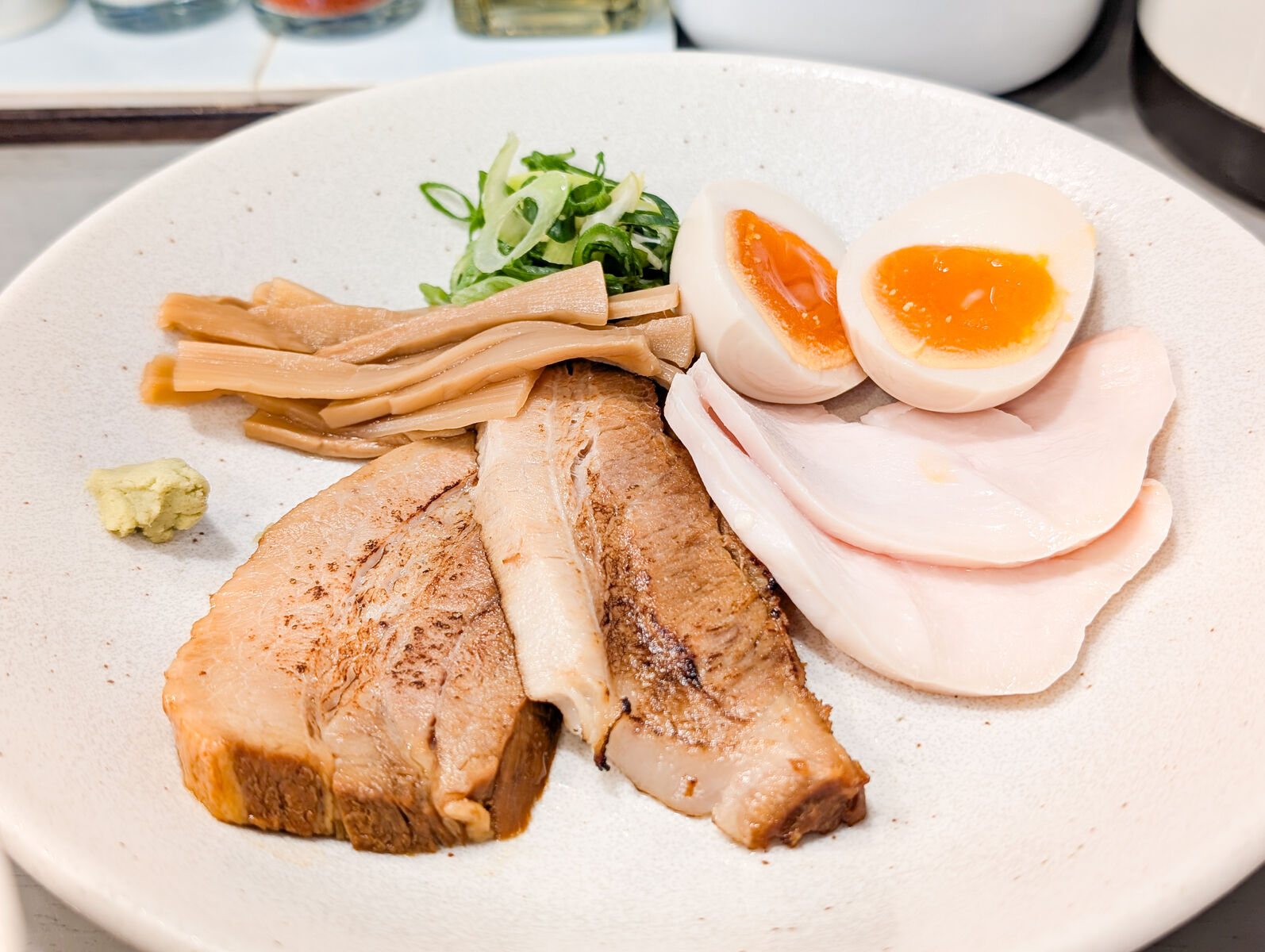 美味しいチャーシュー2種にメンマ、ねぎ、わさび…