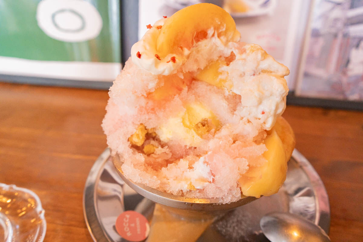 「ROCCA&FRIENDS-TEA ROOM-」の『こぼれ桃のかき氷』(高槻市芥川町)【たかつーグルメ】