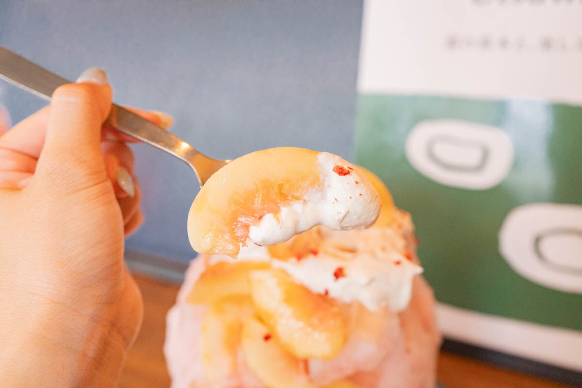 かき氷全体の感想は、とにかく桃!めっちゃジューシー!