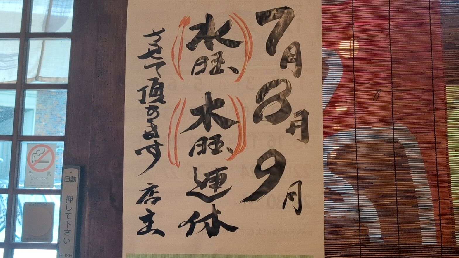 今年(2025年)7月、8月、9月は【水曜】【木曜】がお休みです!