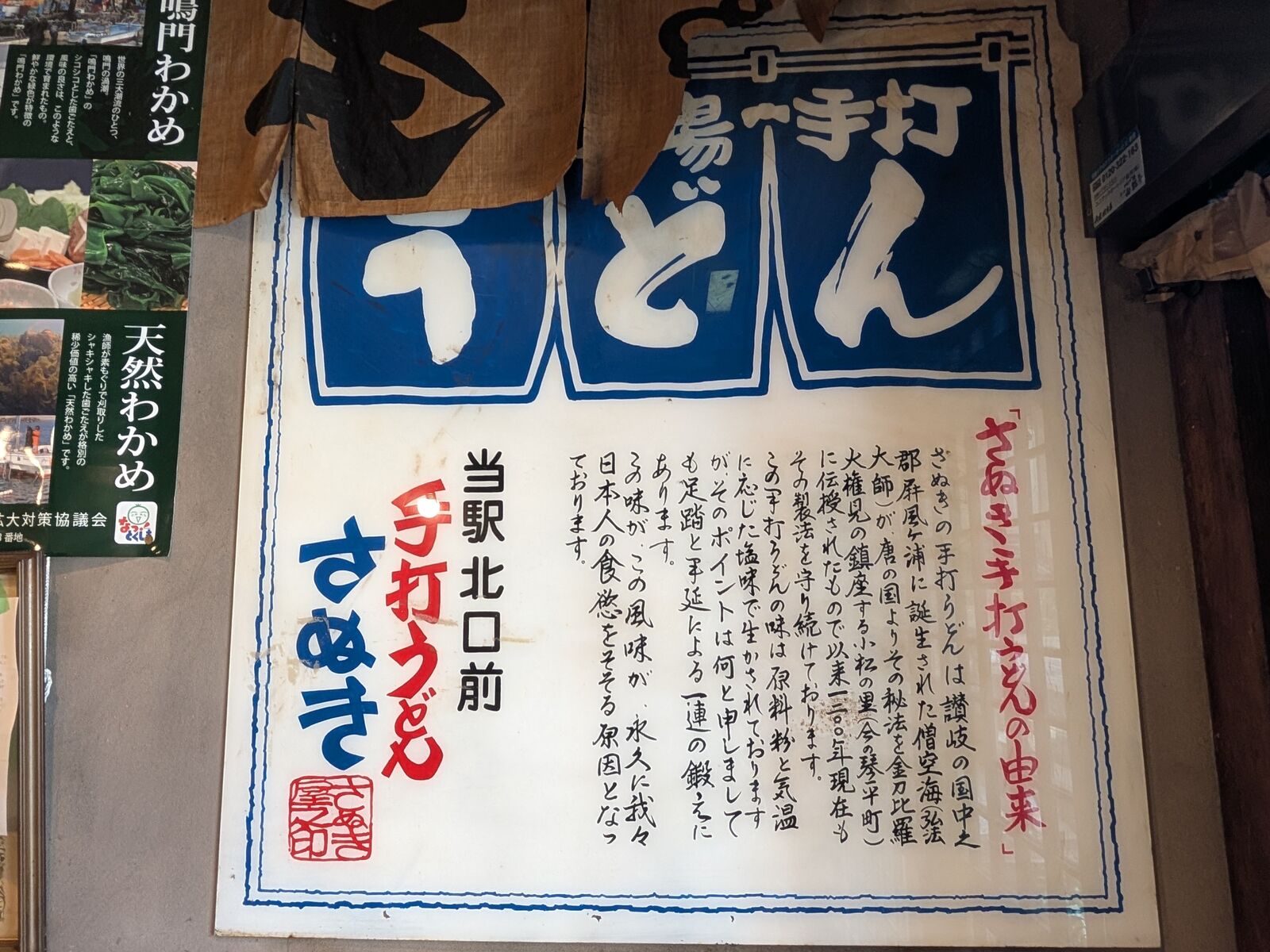 入り口横に有るのは昔の暖簾とさぬきうどんの説明ですね。