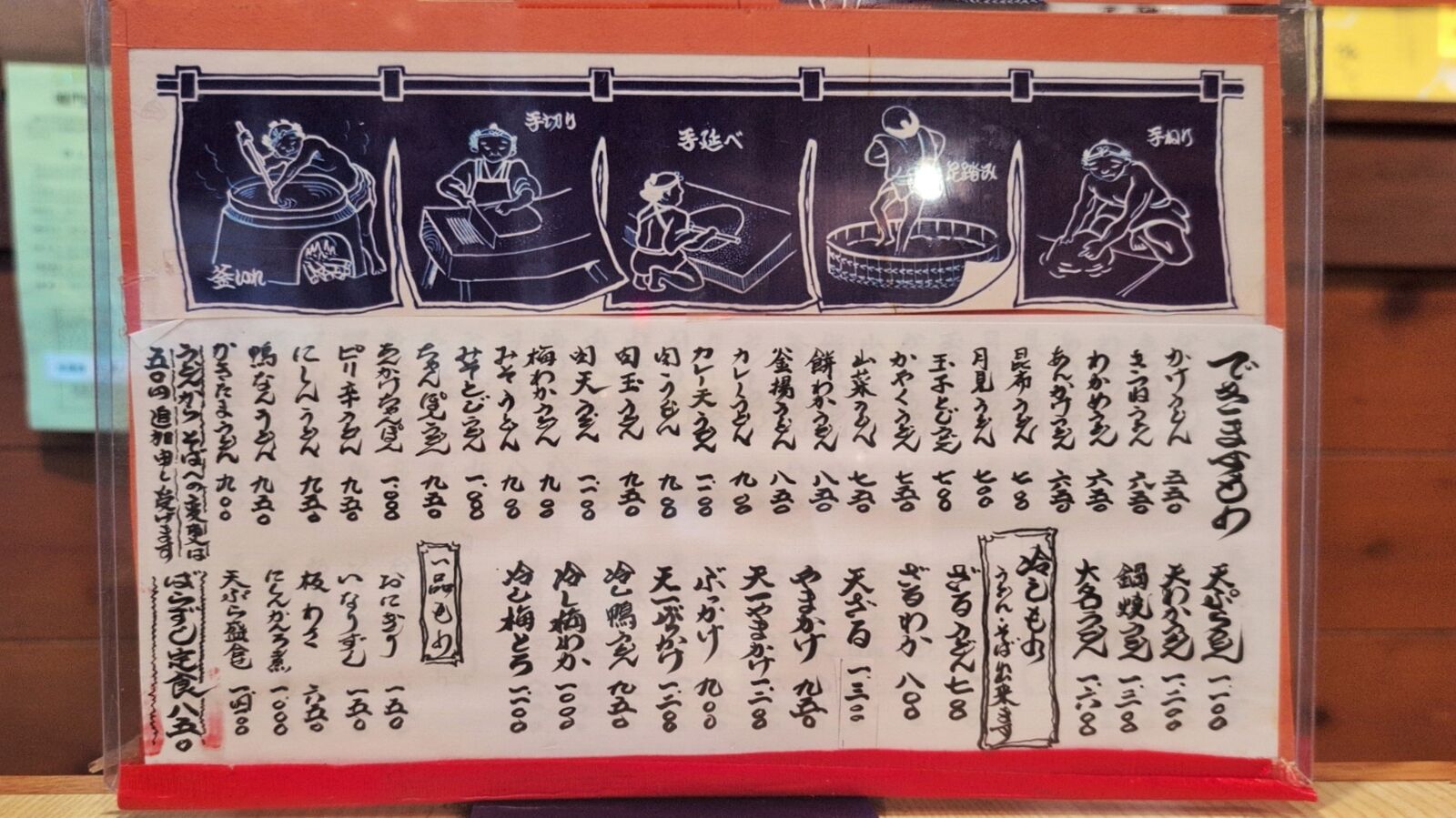 壁には夏の冷たいうどんメニューが貼られていました↓