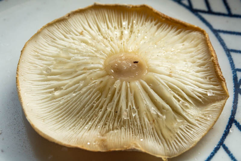 採ったしいたけは、かさの部分だけ残すようにハサミできります。