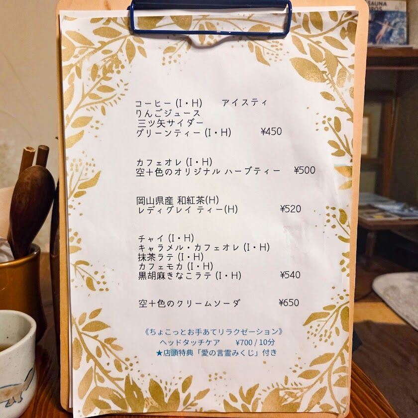 ドリンクのメニューです。定食は外にある看板を見てね!店主さんが紅茶好きで、ここに載っていない紅茶もその時に応じて用意されているようなので、その都度聞いてみるといいかも!